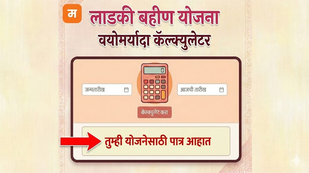 मुख्यमंत्री माझी लाडकी बहीण योजनेचा लाभ घेण्यासाठी शासनाने काही निश्चित वयोमर्यादा ठरवून दिली आहे. अनेक भगिनींना वयाचे मोजमाप करताना अडचणी येतात, म्हणून आम्ही हे खास Age Calculator तयार केले आहे.